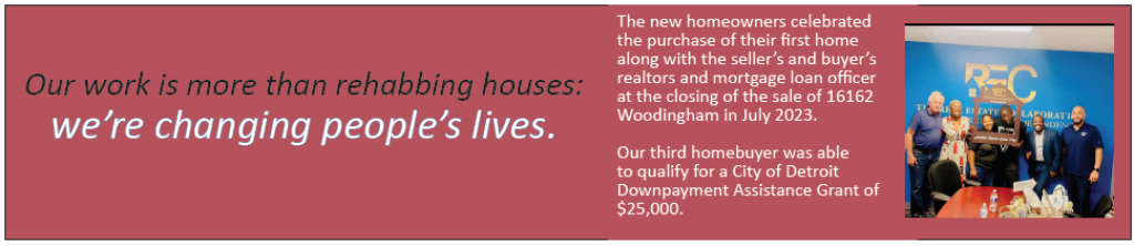 - January 2022: GNDC purchased three properties on Woodingham between Puritan and McNichols from the Detroit Land Bank Authority (DLBA).